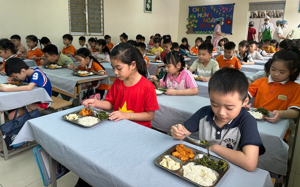 Học sinh trường Tiểu học Lê Quý Đôn ăn bán trú. Ảnh: Thu Oanh/Báo Hànộimới