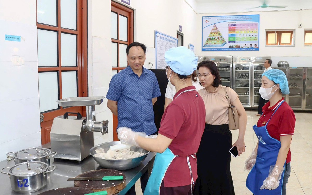 Lãnh đạo xã Phú Xuyên kiểm tra công tác an toàn thực phẩm tại một số trường học trên địa bàn. Ảnh PV/báo Hà Nội mới